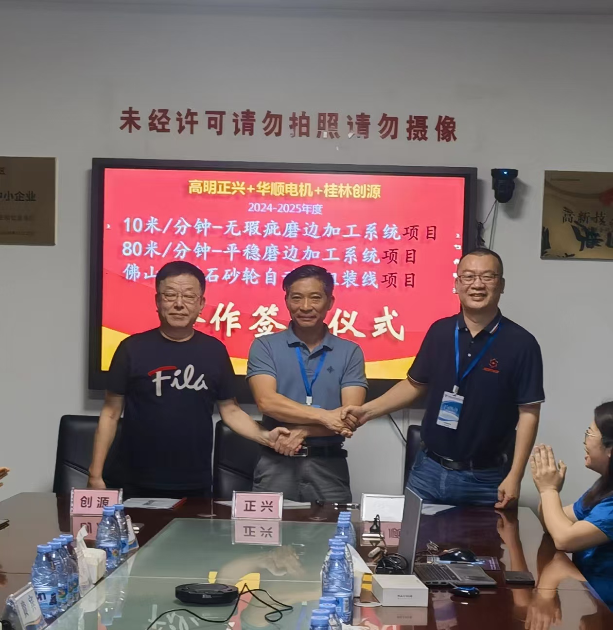 2024年5月,創(chuàng)源公司、正興公司、華順公司三家業(yè)內(nèi)領(lǐng)軍企業(yè)齊聚高明正興公司(5月17日)和桂林創(chuàng)源公司(5月23日),就2024年上海玻璃展會進(jìn)行了深入分析和總結(jié),并對行業(yè)未來走向進(jìn)行了前瞻性的探討。在友好的交流與討論中,三家公司達(dá)成共識,擬定了多項(xiàng)戰(zhàn)略合作計(jì)劃,旨在共同推動玻璃加工技術(shù)的創(chuàng)新與發(fā)展。