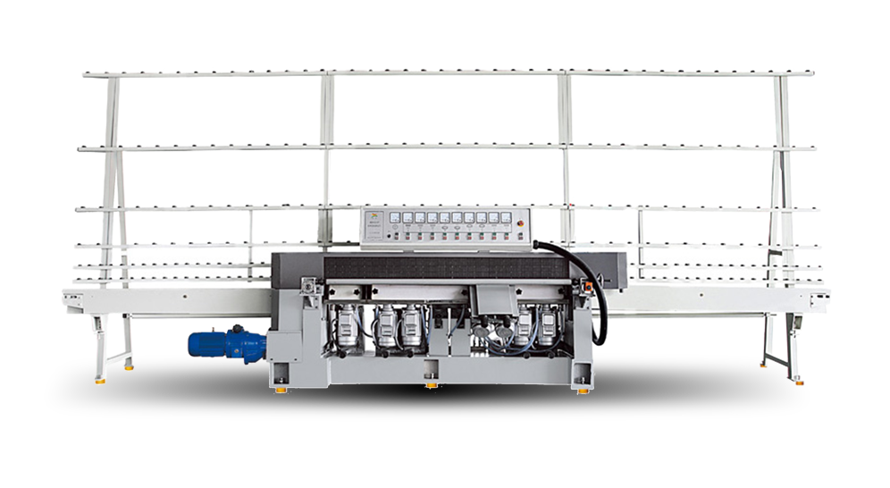 該機(jī)用于平板玻璃的底邊及棱角的磨削和拋光。采用特殊伸縮壓板,可磨削不同厚度的玻璃。本機(jī)操作簡單,控制可靠,前導(dǎo)軌可平行移動,夾持玻璃方便可靠,倒角磨輪采用托板,磨削時無震動,其中9325P機(jī)型帶有單獨(dú)羊毛拋光可保證拋光亮度高,切削分配合理,加工成本低,質(zhì)量穩(wěn)定。各種機(jī)型均可選用ABB電機(jī)。